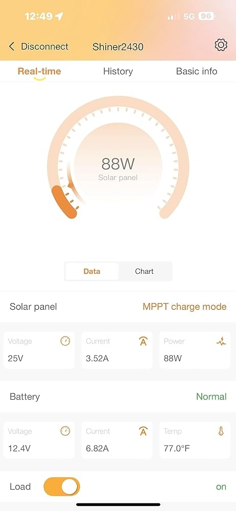 This works way better than the RENOGY junk. only complaint I have is the app they want you to download is in Chinese and English on the screen. I found a better app that works much better. I believe itโs the original manufactures of this controller. The app is in the iOS store under SRNE . Iโm using the 100 watt CIGS panel icon the roof of my ford maverick to keep the battery charged when my strobes are running as the maverick hybrid has o tiny 45AH battery for the 12 volt stuff under the back seat. I just mounted the controller next to the battery. I also use the load output to run all my extra lights and strobes so I can watch the current draw. It will run 20 amps out on the load. It may even have a voltage shut off too to monitor the battery. Havenโt played with that setting as I already have a battery monitor to shut down if it gets too low. The CIGS panel was mounted with 3M tape and itโs stayed on thru multiple car washes. Doesnโt seem to matter on angle . Itโs sending over 6 amps of current on a normal day
